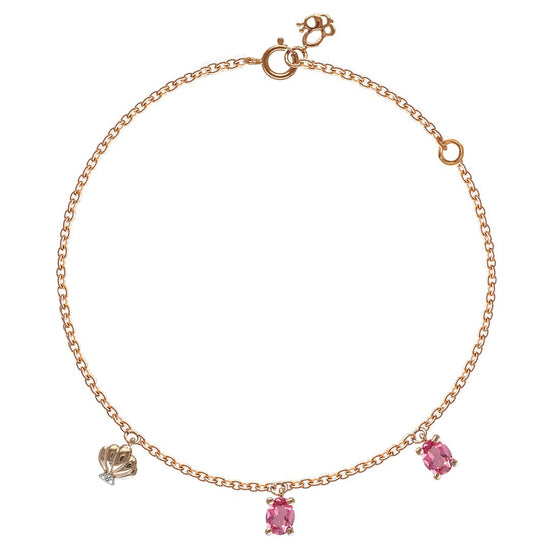 Indulge in the opulent beauty of our 18K gold charm bracelet, featuring delicate charms and shimmering pink sapphire stones from our coveted "Wonder" collection. Crafted with 0.9g of luxurious gold and adorned with 0.04Cts of sparkling diamonds and 0.36 Cts of alluring stones. Elevate your style with this exquisite piece.